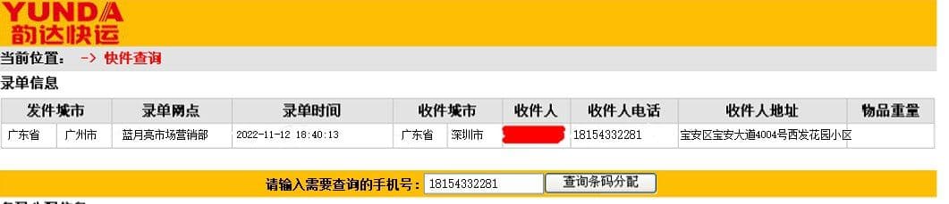 快递收货地址等信息查询